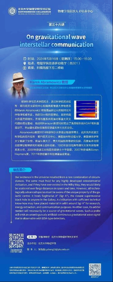 欧洲科学与艺术学院院士、波兰科学院尼古拉斯·哥白尼天文研究中心和瑞典哥德堡大学物理系的Marek Abramowicz教授是国际公认的相对论天体物理权威专家。他的Slim吸积盘理论,是研究超大质量黑洞增长、黑洞与星系共同演化等重大天文问题的理论基础,他还和Narayan教授同时提出了黑洞吸积的ADAF吸积盘理论等,并且曾长期担任瑞典哥德堡大学天文系主任。