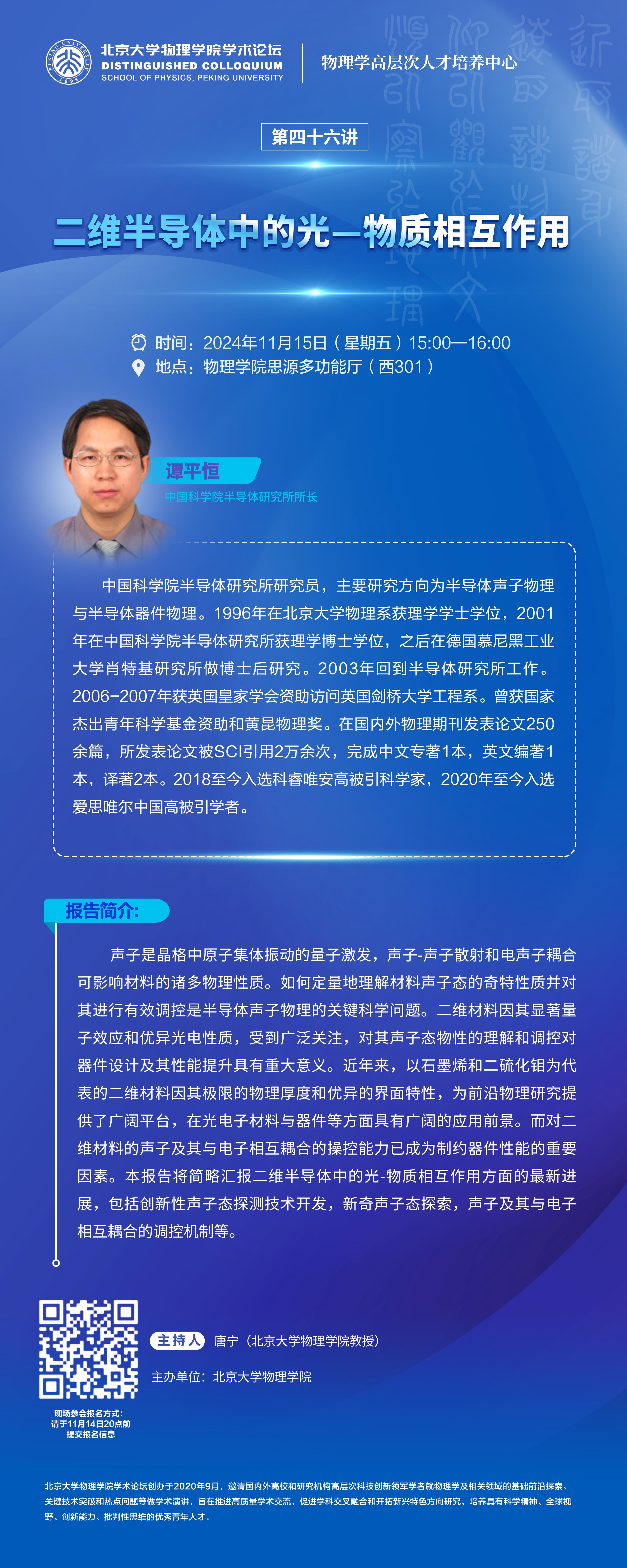 JDB电子娱乐官网学术论坛:创办于2020年9月,邀请国内外高校和研究机构高层次科技创新领军学者就物理学及相关领域的基础前沿探索、关键技术突破和热点问题等做学术演讲,旨在推进高质量学术交流,促进学科交叉融合和开拓新兴特色方向研究,培养具有科学精神、全球视野、创新能力、批判性思维的优秀青年人才。